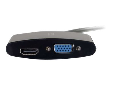 C2G 20cm Mini DisplayPort to HDMI or VGA Adapter Converter 4K UHD - Black - Näyttösovitin - Mini DisplayPort uros to HDMI, 15 pin D-Sub (DB-15) naaras - 20.3 cm - suojattu - musta - 4K-tuki