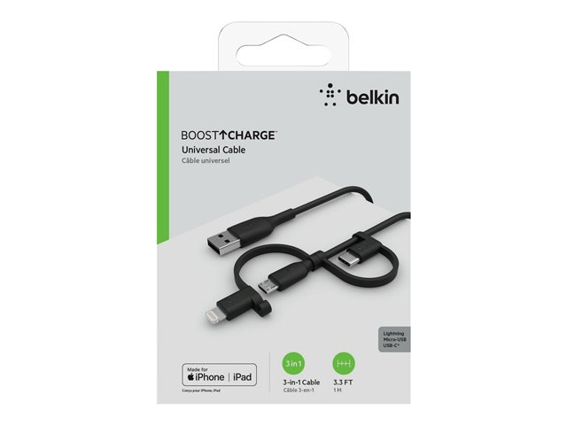 Belkin BOOST CHARGE Universal - USB-kaapeli - USB uros to Micro-USB Type B, Lightning, 24 pin USB-C uros - 1 m CAC001BT1MBK