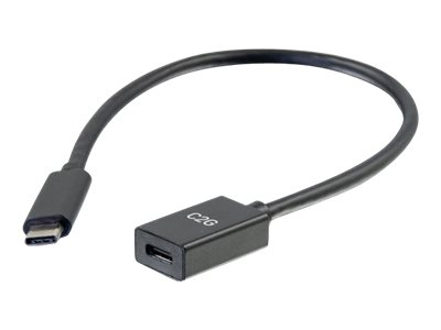 C2G 1ft USB-C to C 3.1 (Gen 1) Male to Female Extension Cable (5Gbps) - USB extension cable - 24 pin USB-C (uros) to 24 pin USB-C (naaras) - USB 3.1 Gen 1 / Thunderbolt 3 - 3 A - 30 cm - valettu - musta
