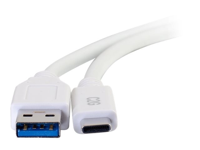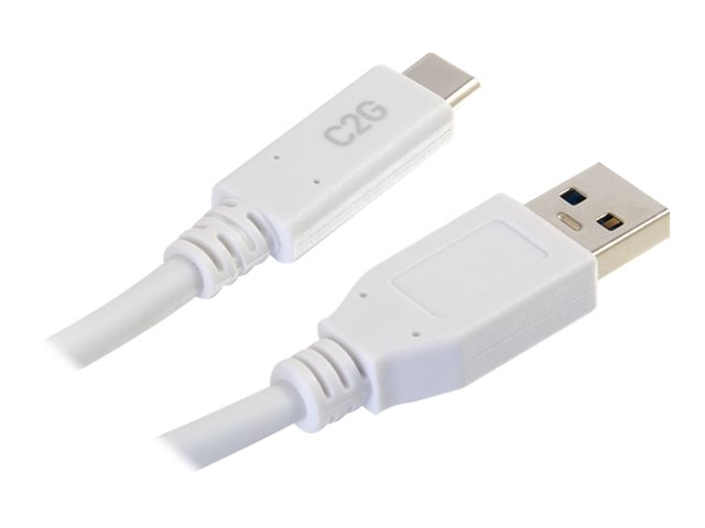 C2G 6ft USB C to USB A Cable - USB 3.2 - 5Gbps - White - M/M - USB-kaapeli - USB Type A (uros) to 24 pin USB-C (uros) - USB 3.1 - 30 V - 3 A - 1.83 m - valkoinen