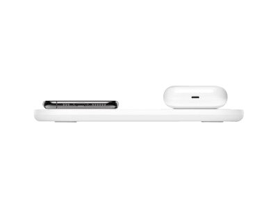 Belkin BoostCharge Dual - Langaton latausalusta + AC-virtasovitin - 15 watti(a) - valkoinen malleihin Apple iPhone 11, 11 Pro, 11 Pro Max, 8, 8 Plus, X, XR, XS, XS Max; Samsung Galaxy Note10, Note10+, S10, S10+, S10e