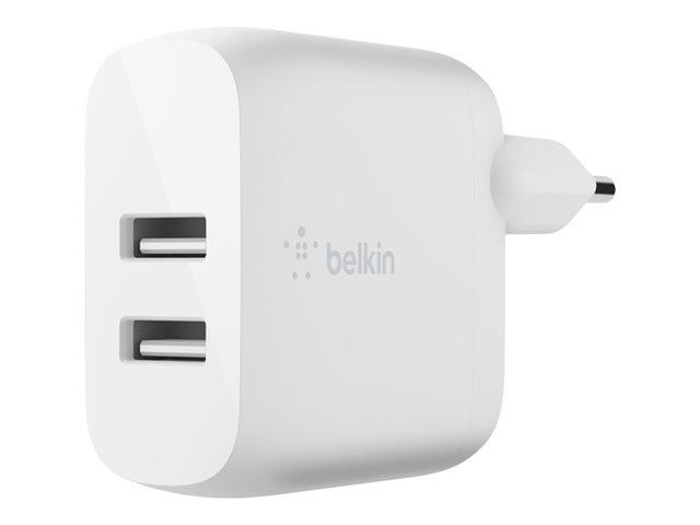 Belkin BoostCharge - Verkkosovitin - 24 watti(a) - 2 lähtöliittimet (USB) - valkoinen