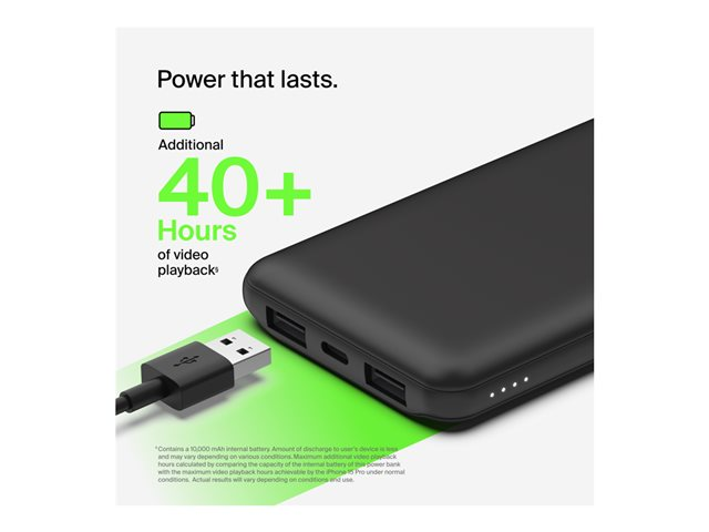 Belkin BoostCharge - Virtapankki - 10000 mAh - 15 watti(a) - 3 lähtöliittimet (24 pin USB-C, 2 x USB) - musta