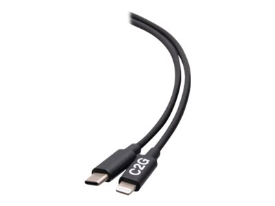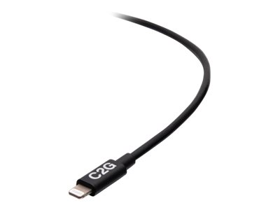 C2G 6ft (1.8m) USB-C Male to Lightning Male Sync and Charging Cable - Black - Salamakaapeli - 24 pin USB-C uros to Lightning uros - 1.83 m - musta - USB-virransyöttö (20 W), up to 480 Mbps