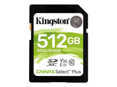 Kingston Canvas Select Plus - Flash-muistikortti - 512 Gt - Video Class V30 / UHS-I U3 / Class10 - SDXC UHS-I