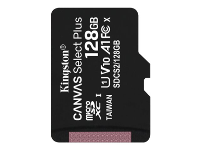 Kingston Canvas Select Plus - Flash-muistikortti - 128 Gt - A1 / Video Class V10 / UHS Class 1 / Class10 - microSDXC UHS-I