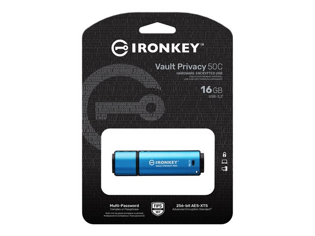 Kingston IronKey Vault Privacy 50C - USB Flash-asema - salattu - 16 Gt - USB-C 3.2 Gen 1 - TAA-yhteensopiva