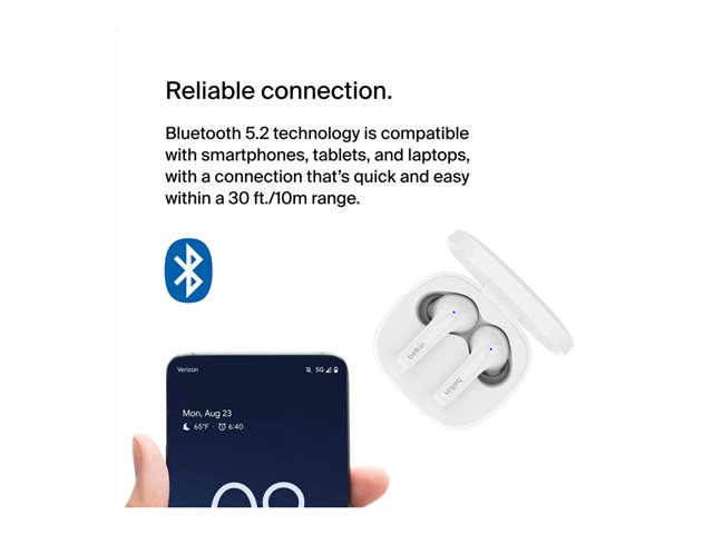 Belkin SoundForm Motion - Aidosti langattomat kuulokkeet mikrofonilla varustettu - korvansisäiset - Bluetooth - aktiivinen melunpoisto - melua vaimentava - valkoinen AUC010BTWH