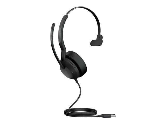 Jabra Evolve2 50 UC Mono - Kuulokkeet + mikrofoni - korvien päällä - langallinen - aktiivinen melunpoisto - USB-A - musta - Zoom-sertifioitu, sertifioitu Microsoft Teamsille, Cisco Webex Certified, Alcatel-Lucent -sertifioitu, Unify-sertifioitu, Microsoft Swift Pair -sertifioitu, Amazon Chime -sertifioitu