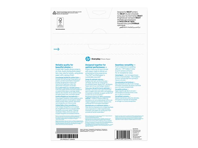 HP Everyday Photo Paper - Kiiltävä - 8 milliä - A4 (210 x 297 mm) - 200 g/m² - 25 arkki (arkit) valokuvapaperi malleihin Deskjet 21XX, 2622, 36XX; Officejet 52XX, 6000, 68XX, 80XX; Photosmart B110, Wireless B110 Q5451A