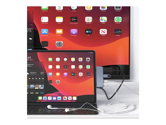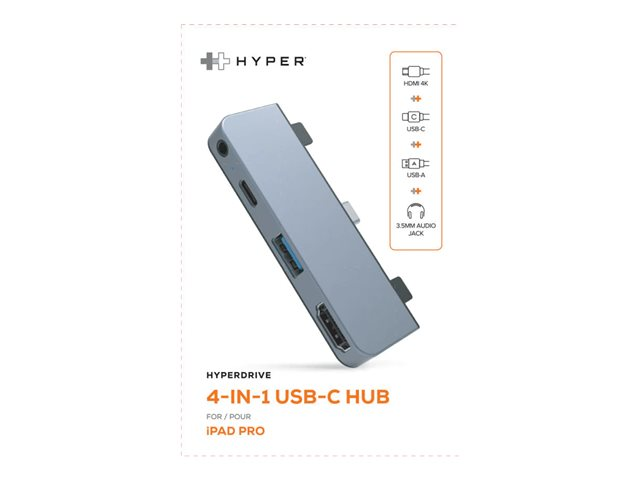 HyperDrive 4-in-1 Hub - Telakointiasema - USB-C - HDMI malleihin Apple 10.9-inch iPad Air; 11-inch iPad Pro; 12.9-inch iPad Pro; iPad mini (6. sukupolvi)