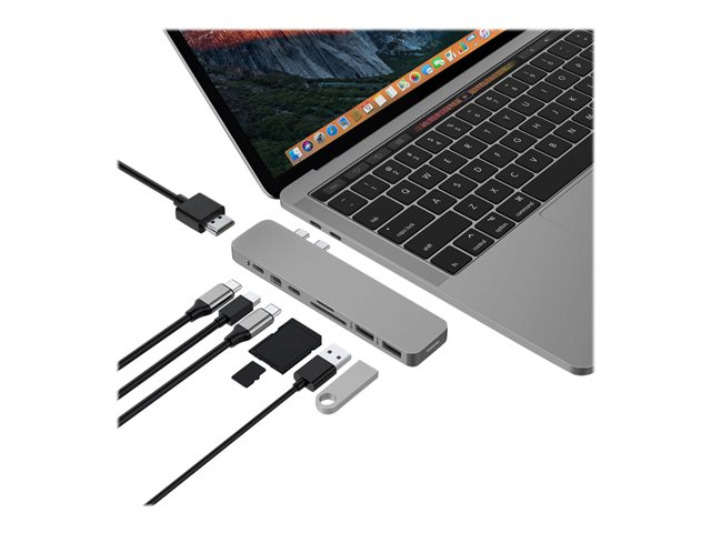 HyperDrive Pro 8-in-2 Hub - Telakointiasema - USB-C x 2 - HDMI, Mini DP GN28D-GRAY