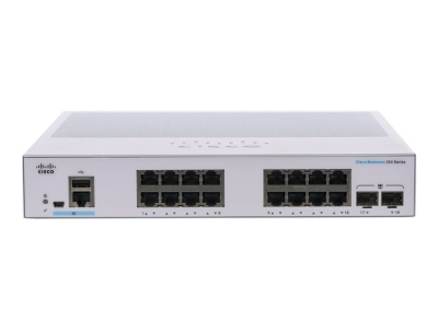 Cisco Business 350 Series CBS350-16T-E-2G - Kytkin - L3 - Hallinnoitu - 16 x 10/100/1000 + 2 x Gigabit SFP - telineeseen asennettava CBS350-16T-E-2G-EU