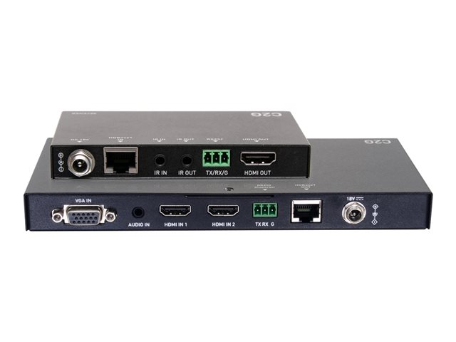 C2G Dual 4K HDMI HDBaseT + VGA, 3.5mm, and RS232 over Cat Switching Extender Box Transmitter to Ultra-Slim Box Receiver - 4K 60Hz - Laajennin video/audio/sarja - lähetin - HDBaseT, HDMI - kautta CAT 5e/6/6a/7 - jopa 70 m