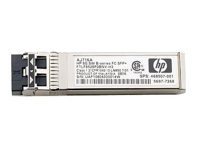HPE B-Series - SFP+ lähetin-vastaanotin-moduuli - 8Gt kuitukanava (SW) - Kuitukanava (Fibre Channel) - remarketing-tuotteet malleihin Brocade 16Gb/12, 16Gb/24; HPE 8/24, 8/8; StoreFabric SN4000, SN6500, SN8600B 4-slot AJ716BR