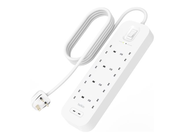 Belkin Connect - Ylijännitesuoja - 2:lla USB-C-portilla - lähtöliittimet: 8 - 2 m johto